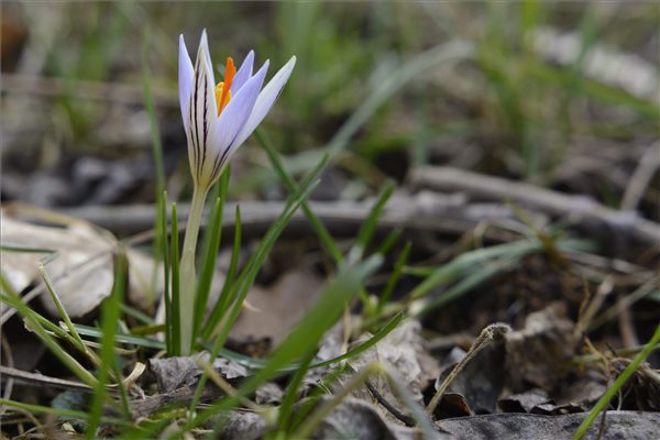 Virágzik a tarka sáfrány (Crocus reticulatus) a Debrecenhez közeli Erdőspusztán 2015. február 28-án. MTI, fotó: Czeglédi Zsolt.
