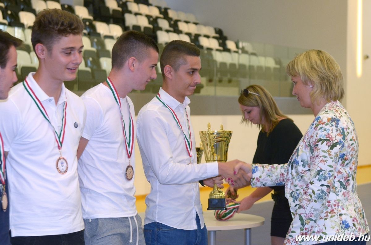 – A Debreceni Egyetem sportbarát egyetem, évről évre új elemekkel bővül az intézményi sport-infrastuktúra, melyhez most már a képzési kínálat is igazodni fog. A futball a legnépszerűbb sportág, és a csapataink is egyre jobb eredményeket érnek el – emelte ki Jávor András rektorhelyettes az éremátadó ünnepségen.