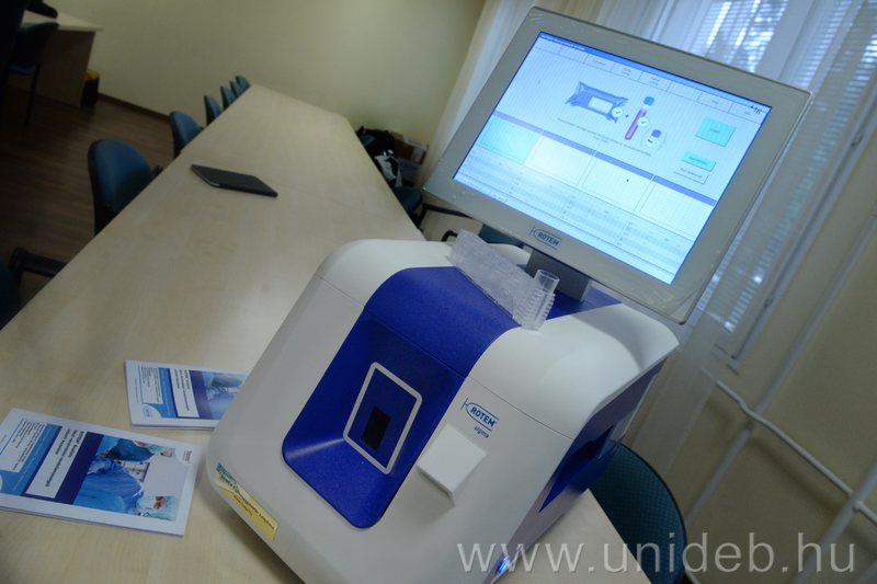– A kórház célja a lehető legkorszerűbb betegellátás biztosítása. Ezt szolgálja ez az új műszer is. A ROTEM készülék a laboratóriumi vizsgálatnál jóval gyorsabban ad lehetőséget terápiás döntések meghozatalára, már műtét közben, súlyosan vérző betegek esetében, ezáltal javulnak a betegek túlélési esélyei. Így elkerülhető például egy drága vérátömlesztés, vagy egy feleslegesen adott vérkészítmény beadása – hangsúlyozta Lampé Zsolt főigazgató.