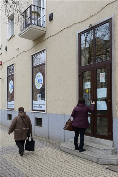Egy ügyfél készül bemenni az Észak-magyarországi Regionális Bank (ÉRB) Zrt. debreceni bankfiókjába 2015. február 27-én.A Magyar Nemzeti Bank több évtizedes visszaélés-sorozatot gyanít a Buda-Cash Brókerháznál, ezért február 24-én azonnali hatállyal felfüggesztette működési engedélyét, és a brókerházzal összefüggésbe hozható Dél-Dunántúli Regionális Bank (DRB) bankcsoporthoz tartozó négy banknál, így az ÉRB-nél is korlátozó intézkedéseket rendelt el. MTI Fotó: Czeglédi Zsolt