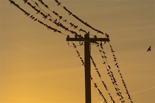 Fecskék gyülekeznek villanyvezetékeken a Hortobágyon, a Kungyörgy-telep közelében 2015. augusztus 30-án. MTI Fotó: Czeglédi Zsolt