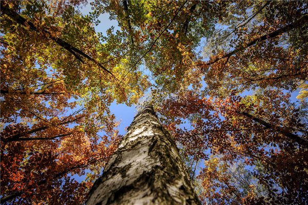 Őszi színekben pompázó fák a Nyírerdő Zrt. Gúthi Erdészetében, Nyíradony közelében 2015. október 27-én. MTI Fotó: Czeglédi Zsolt