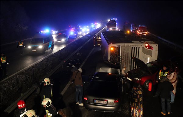 Janasóczki Attila közölte: a halálos baleset Mezőkeresztes és Mezőkövesd között történt az autópályán, az utat teljes szélességében lezárták. Hozzátette: egy utasokat szállító busz ezidáig tisztázatlan körülmények között felborult. A baleset következtében három ember meghalt, többen pedig megsérültek. Janasóczki Attila közölte: a busz magyar forgalmi rendszámú volt. A jármű balesete után további autók rohantak előbb a buszba, majd egymásnak. Kilenc személyautó és két mikrobusz ütközött. Ezek között magyar, román és ukrán felségjelzésű is van.