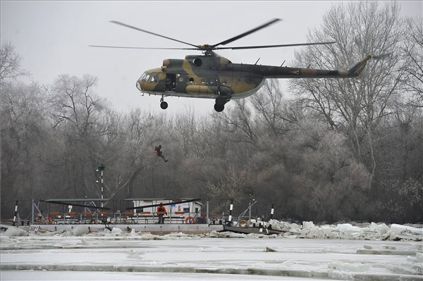 Honvédségi helikopterrel kimentették a jégbezárt tiszacsegei kompon tartózkodó férfit hétfő délelőtt – tapasztalta a helyszínen az MTI tudósítója.