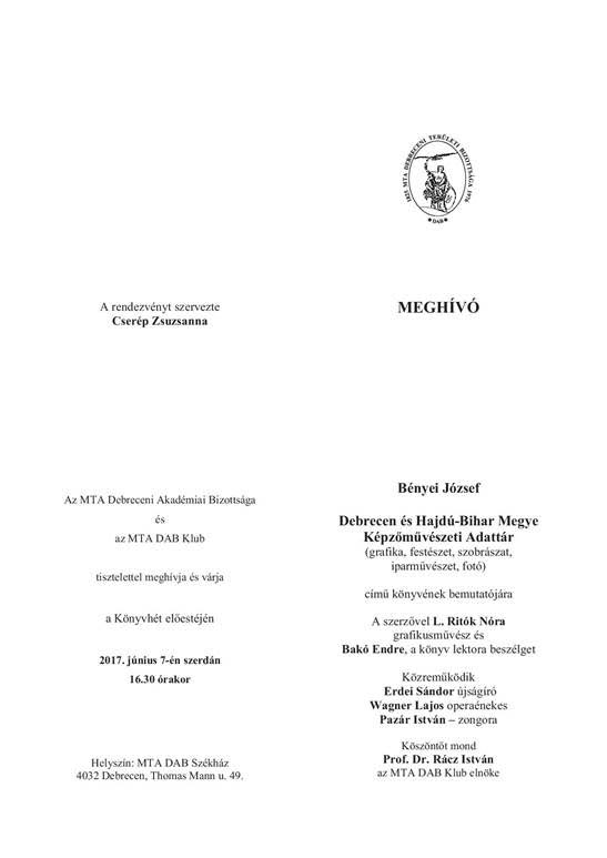 A könyvhét előestéjén mutatja be könyvét Bényei József, melynek címe: Debrecen és Hajdú-Bihar Megyei Képzőművészeti Adattár.