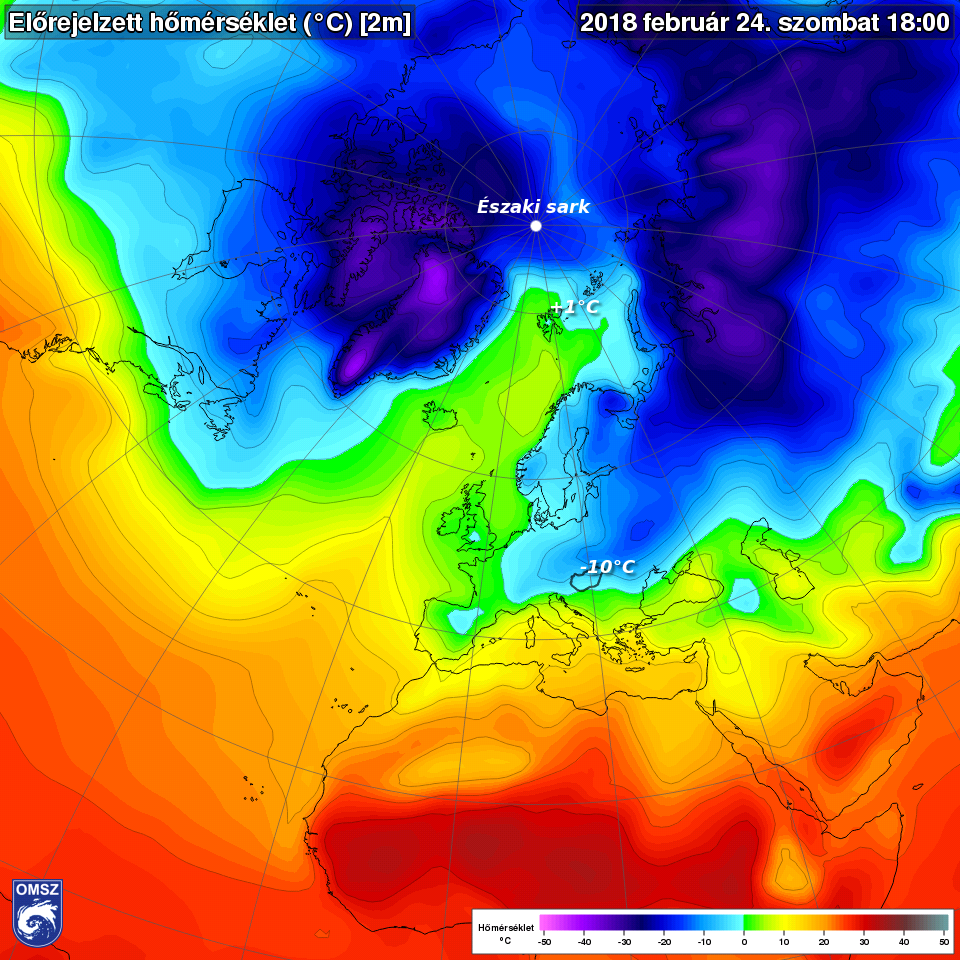 Az Északi-sarknál jóval melegebb lesz, mint Magyarországon – jellemezte a várható időjárást szombaton Facebook-oldalán a meteorológiai szolgálat, amely az extrém hideg miatt vasárnapra több megyére elsőfokú figyelmeztetést adott ki.