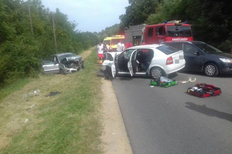 A baleset akkor következet be, amikor egy Szekszárd irányából Tamási felé közlekedő autó áttért a menetirány szerinti bal oldalra, és összeütközött a szemből közlekedő másik autóval.