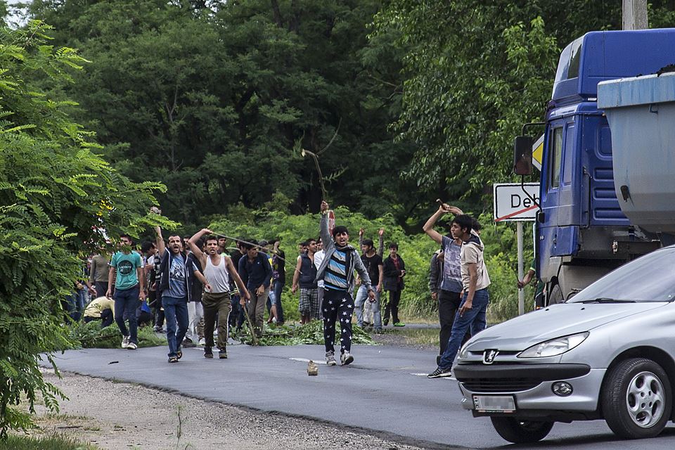 Hétfő délután a migrációs tábor mintegy száz lakója a tábor melletti 471-es számú úton garázdálkodott. Botokkal ütötték és megdobálták a leálló személyautókat és autóbuszokat, és felgyújtották az út menti kukákat. A konfliktusban egy rendőr könnyebben megsérült, kővel dobták meg. Az alapkonfliktus két migráns között alakult ki, amiatt, hogy egyikük megtaposta a Koránt.