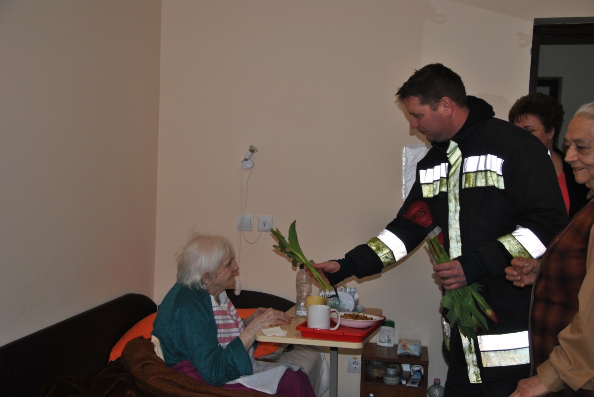 Egy idősek otthonába riasztották a püspökladányi hivatásos tűzoltókat csütörtökön délelőtt. Az épület egyik helyiségében tűz ütött ki, melyet több vízsugárral fékeztek meg a tűzoltók. A lakók időben elhagyták az épületet, ám egy ember a füsttel telítődött folyosón rosszul lett őt ki kellett menekíteni az épületből. Szerencsére ez mind feltételezés, egy szituációs gyakorlat része volt Püspökladányban. Miután a feladatot a tűzoltók végrehajtották és visszaszereltek a gépjárműfecskendőre, körbejárták a az idősek otthonát és pár szál tulipánnal felköszöntették az ott lakó hölgyeket és ott dolgozókat a mai nőnap alkalmából.